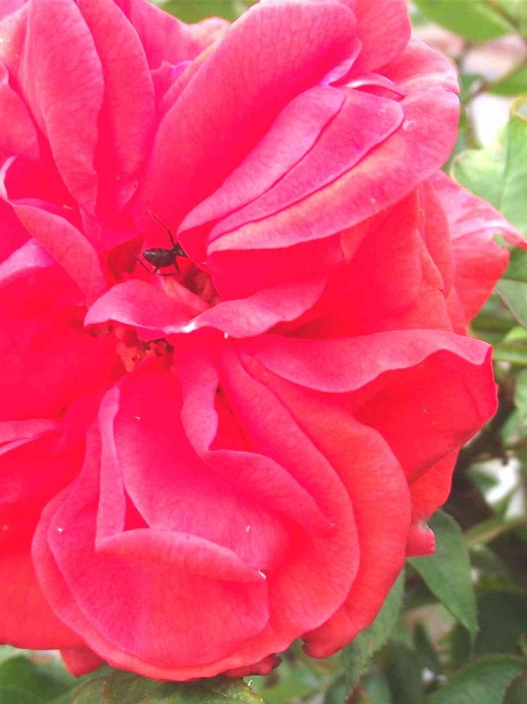 大きな赤い薔薇の中に、🐜のおけつ、