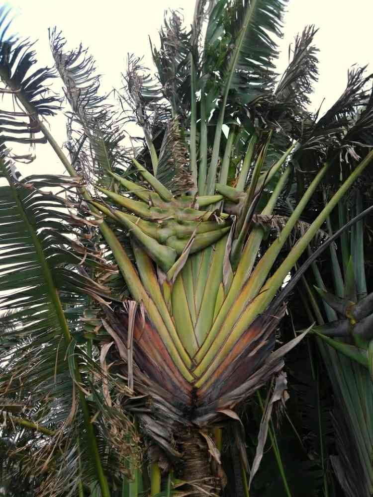 そしてそんなタビビトさんに花が!これはでも咲き終わった後かな?同じバショウ科でも極楽鳥花のようなハデハデした花ではないみたい?実はド派手な真っ青ですがw