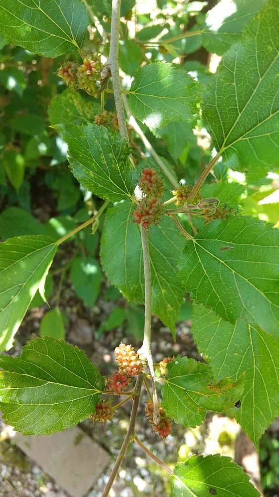 マルベリー(桑の実)、これからどんどん赤黒く熟れてくるので、そうなったら食べられますよ✨😊