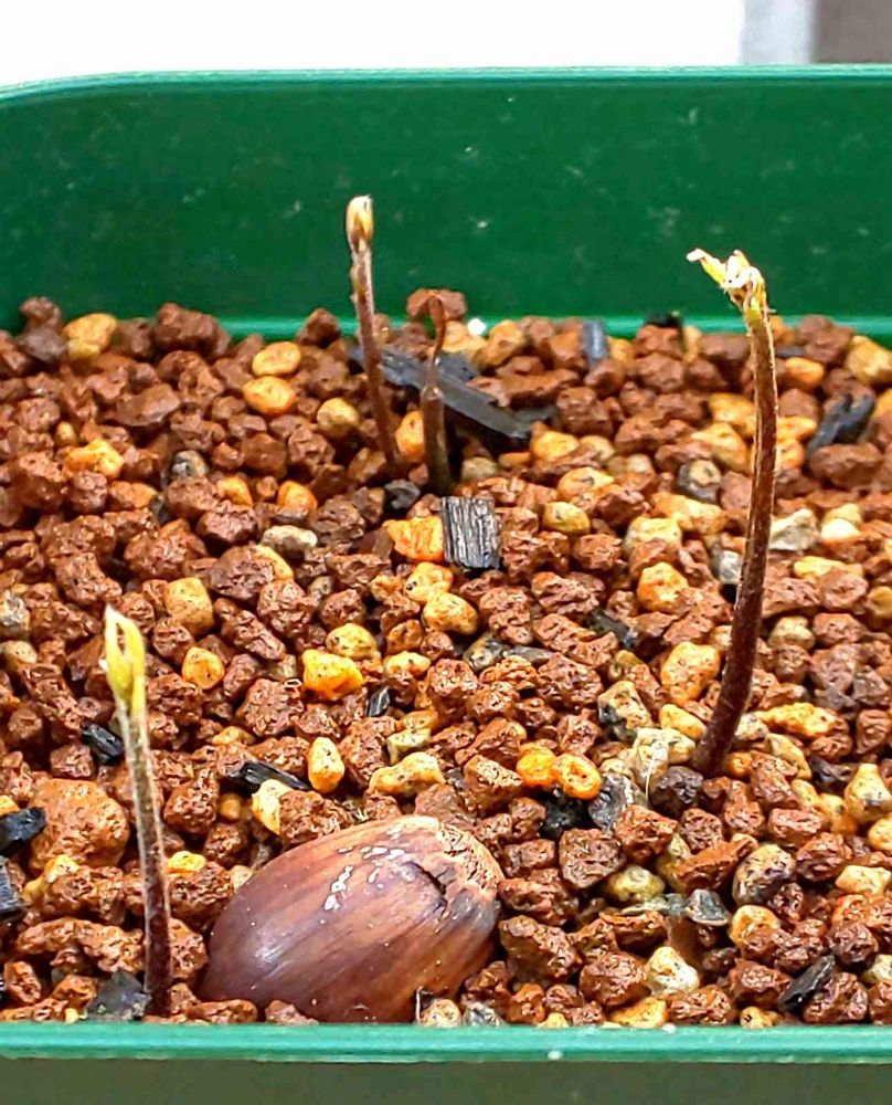 10月23日に埋めたシラカシのドングリから芽🌱が3本現れました!🙌🎶