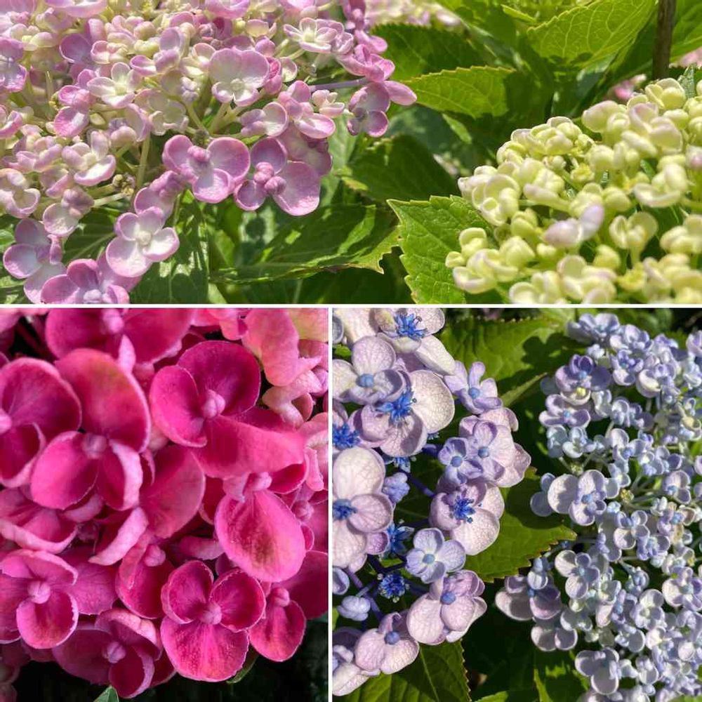 上段は、地植え、左下は今年購入した紫陽花、右下は、昨年の不明株が開花したものになります。