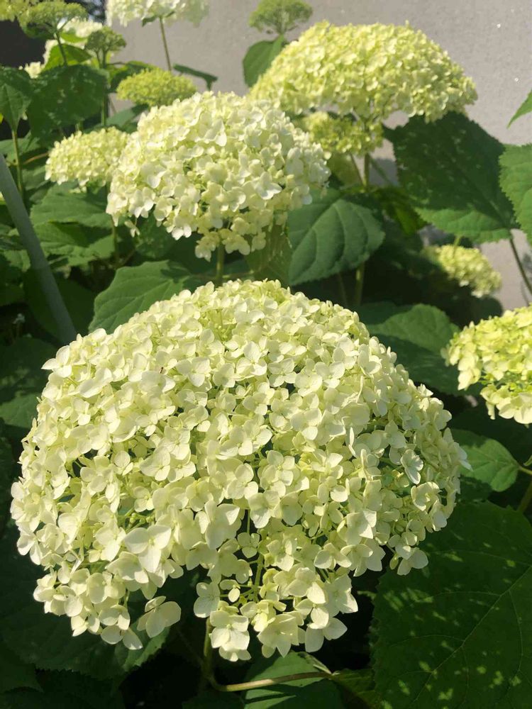アジサイやガクアジサイは日本原産種が改良されたものですが、近年、見慣れたこれらのアジサイのほかに、真っ白で非常に大きな花房のアメリカノリノキの園芸品種‘アナベル’が好まれるようです🤗