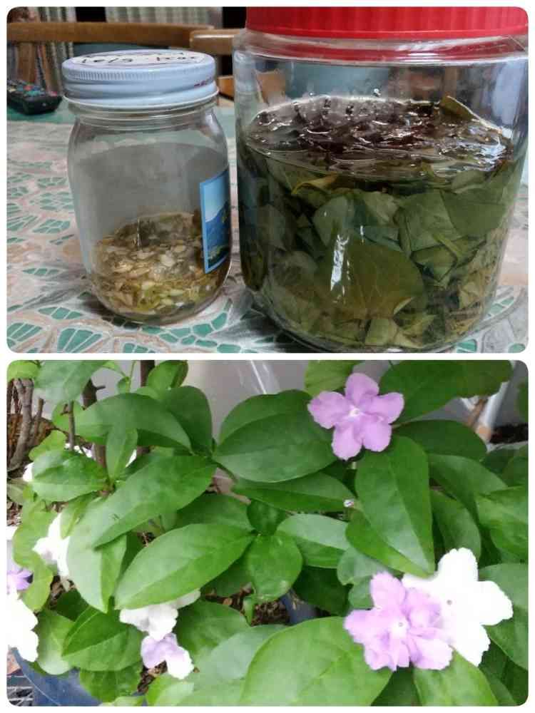 こんにちは🎵ドクダミチンキ作りました😁洗って、干して、葉と花を茎から切り離すのがなかなか大変でした。先日脱走したチョコが側に来て、監督しながら、茎で遊んでバラバラにするしで😅何とか出来上がりました😁(=^ェ^=)日陰で咲いたニオイバンマツリと😄