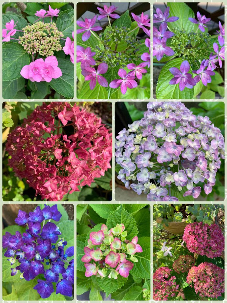 こんにちは~なん中の右はおたふく紫陽花ですか?我が家のおたふくさん昨年挿木しましたが今年はさいてません💦💦沢山ありますね~