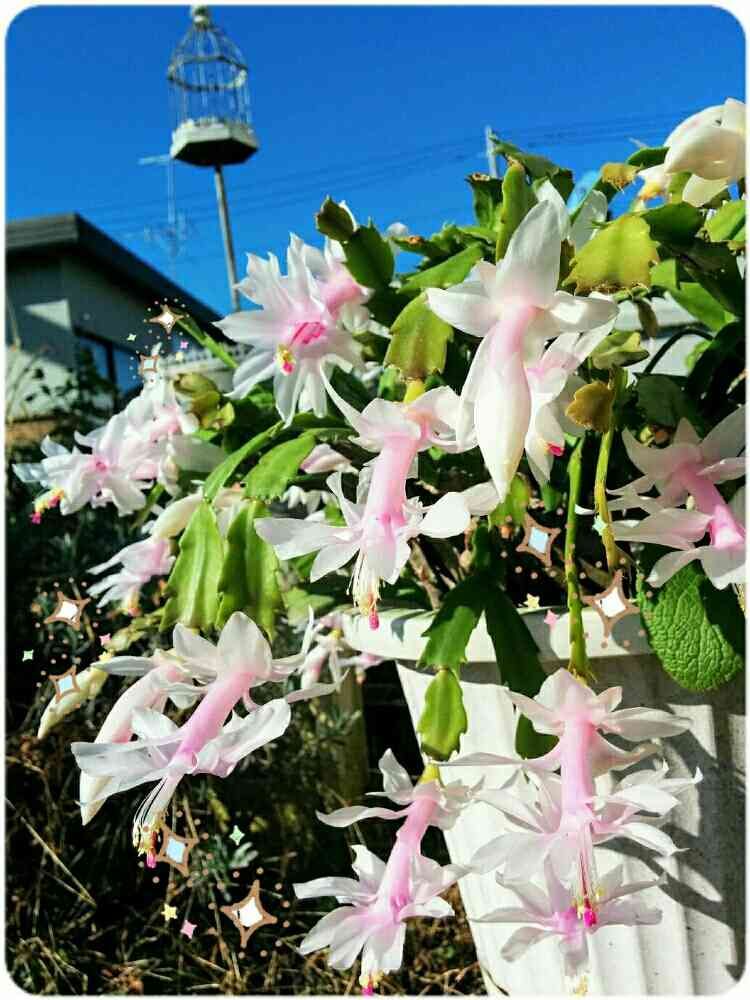 おはようございます❇ピンクと白のお花🎆が青空とmatchしています‼綺麗なpic目を引きました❇良いお天気ですね❤九州大分も寒いですが青空ですよ❇