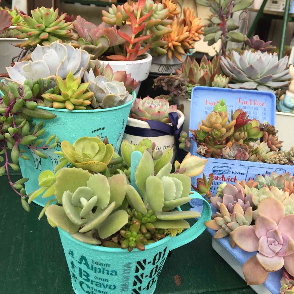ブロンズ姫ちゃんちの多肉ちゃんは、みんなしあわせそうだなぁ〜テーブルに運んでもらって‼️