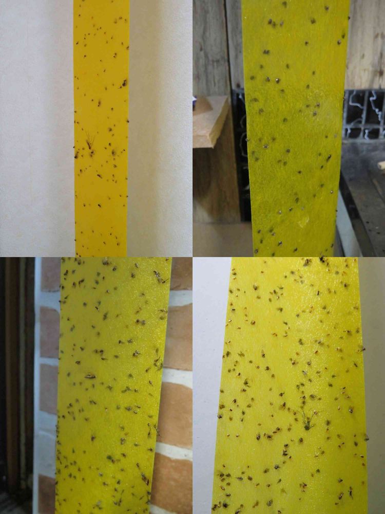 うちでは6か所ぐらいに常設しています。一度仕掛けたら1年は粘着が持ちます。効力は写真を観ての通りです。年間1000匹以上は捕獲してると思います。台所はもちろん。植物を置いている部屋にも欠かせません。植物に殺虫剤は使えませんから、こういったアイテムで対策するしかありません。ビカクシダなどミズゴケが湿りやすいところにもよく湧くので、あちこち設置しています。過去にいろいろなコバエ対策をしていましたが、カモ井の吊るすだけは他とは次元が違います。お値段もお手頃で、ヨドバシカメラなどで3個入り400円ぐらいです。私はこの度、3セット注文して交換しました。コバエだけでなく、大きいハエも捉えます。トイレなどにも適していますよ。これを見ている100%の方にオススメしたいです。ヨドバシは送料無料なので、まずは1セットから購入してみてください。