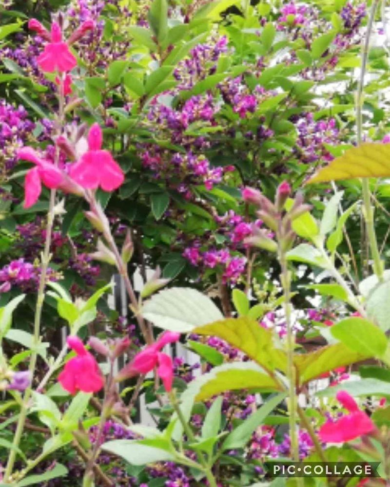 チェリーセージとヤマハギ? 鉢植えで混植していたものが いつのまにか 大きくなって地植えになっていた😅