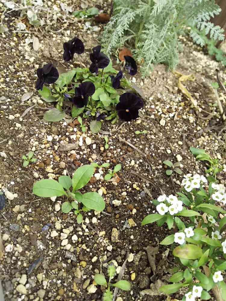 だけどタネ蒔き忘れな草とこぼれ種ネモフィラペニーブラックが生長してきました🎵春にはブルー💙×ブラック(紫も)花壇が出来上がるハズ‼️