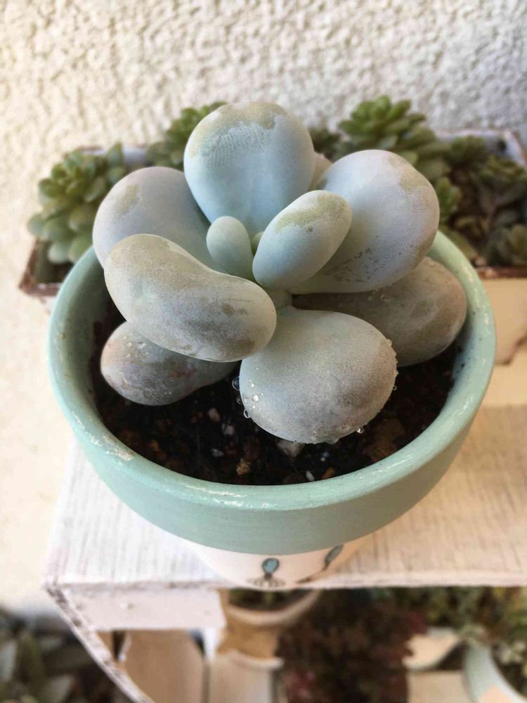 ホームセンターにぷくぷくのかわいいこ発見❤️でもみんなに触られたのかお粉がはげて指紋が…。触りたくなる気持ちわかるけどね😅お持ち帰りして植え替えたらさらに指の跡が増えてしまった…。しかしこのぷくぷくかわいいなーー😍