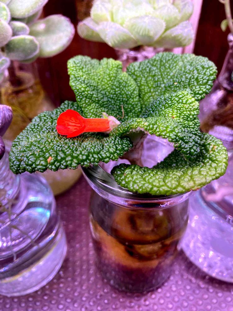 塊根植物のシンニンギア・ブラータさんから赤い花芽が出ました(●´ω`●)