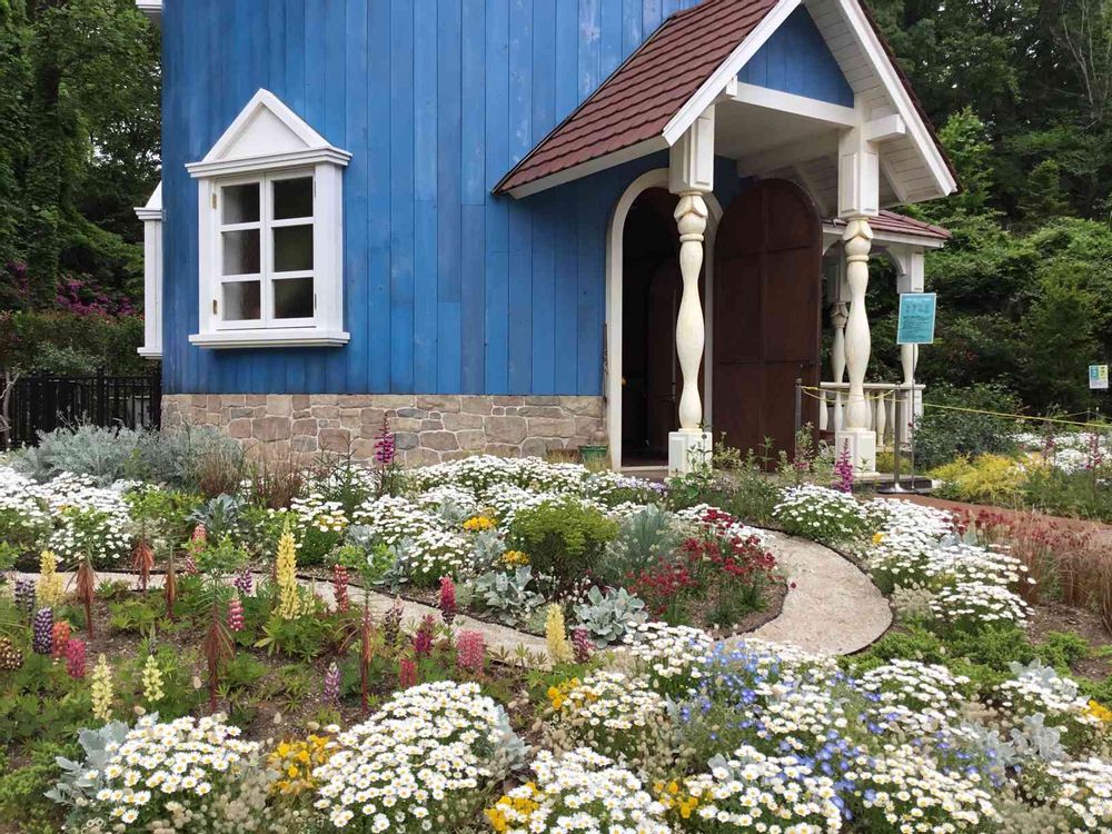 連休にムーミンバレーパークに行った時のお花のある写真です。この白いのはノースポールかなあ?🤔
