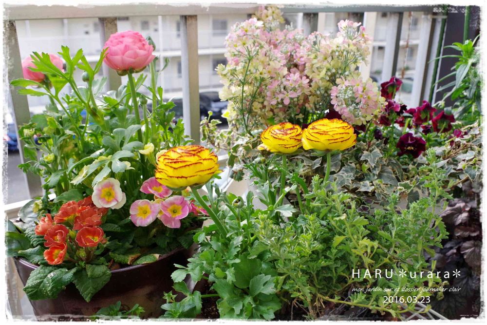 H・A・R・Uさんのバルコニー/ベランダ,ラナンキュラス,プリムラ・ウィンティー・ピーチの投稿画像