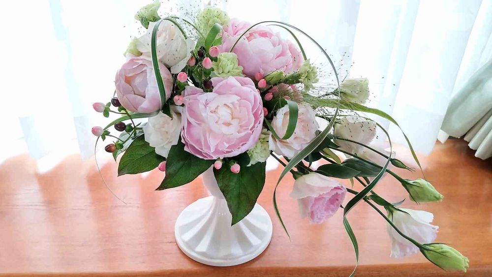 窓辺,シャクヤク,フラワーアレンジメントの投稿画像