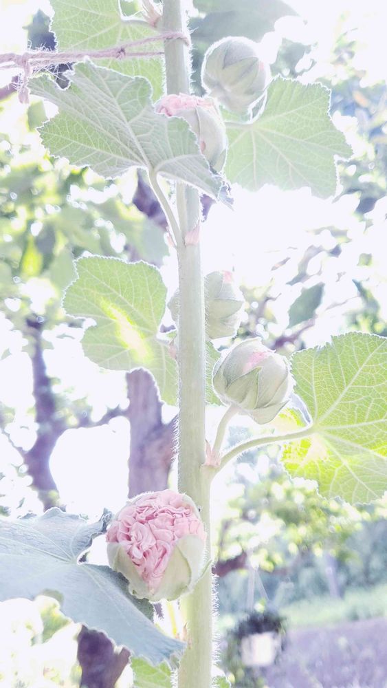 小さな苗から1年。タチアオイが初めてうちの庭で咲きそうです🌟