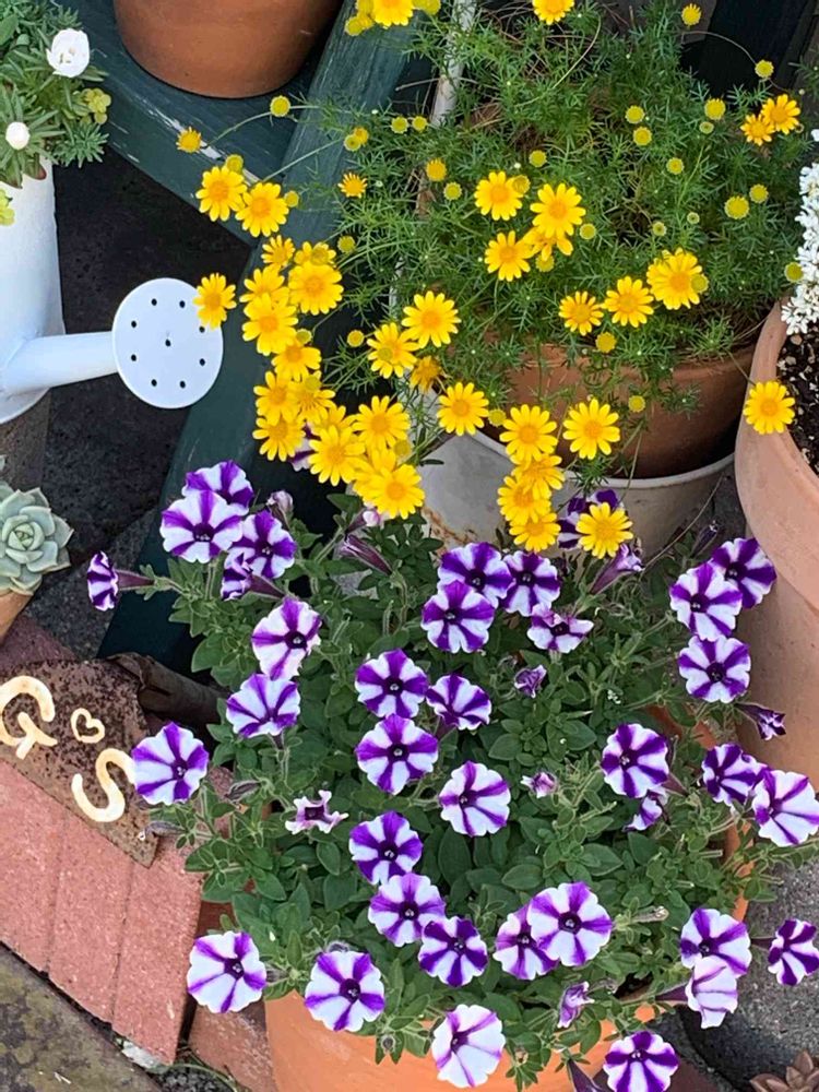 ダールベルグデージー🌼もスーパーチュニアビスタミニ💜も綺麗に咲いてくれています💕