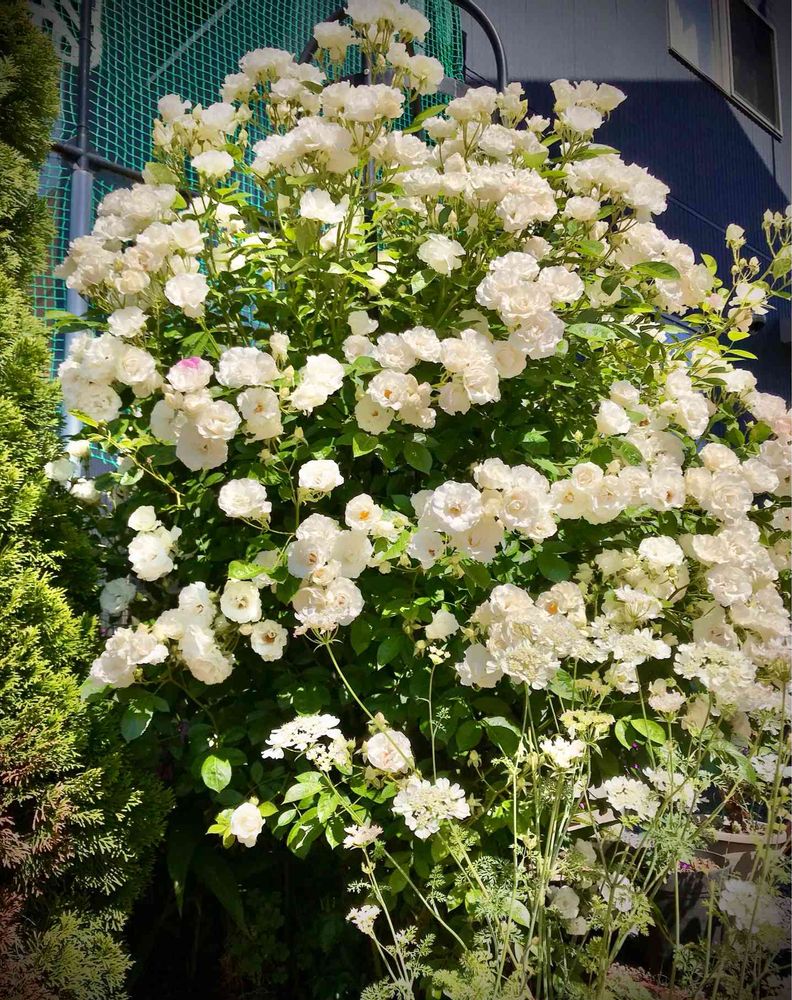 つるバラサマースノー 、ほぼ満開になりました✨