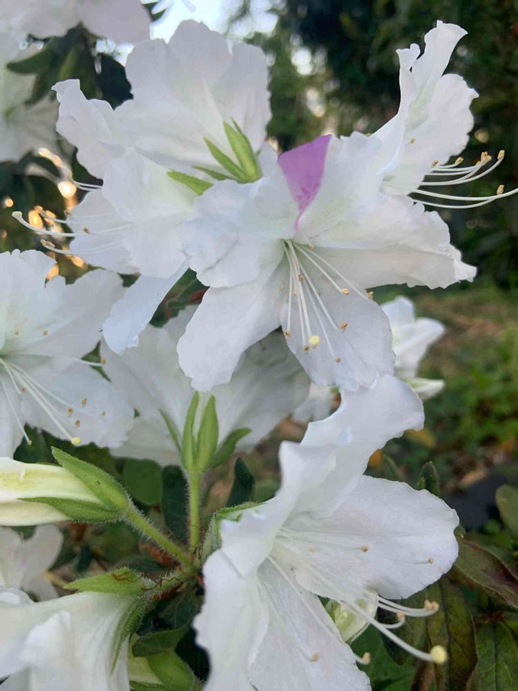 先日投稿した白いサツキにピンクの差し色のサツキが咲いていました💓