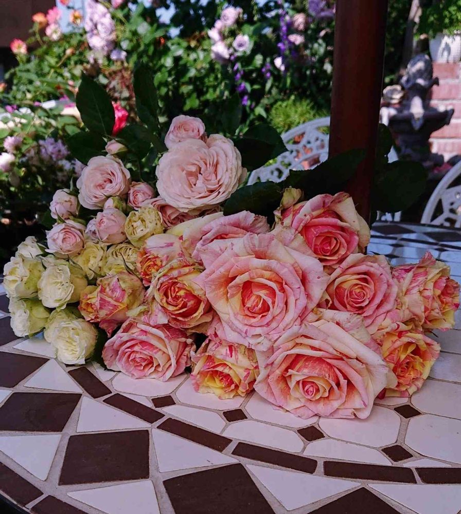 小輪のスプレー薔薇も一緒にカットして🎵花束💐位のボリュームよ~💓