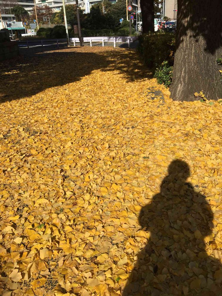 大きなイチョウの木の足元は、落葉した葉っぱの絨毯。フカフカでしたよ。