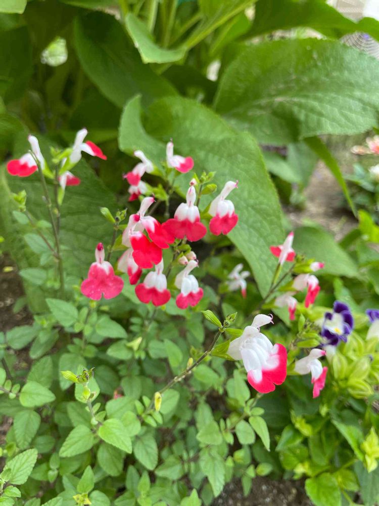 お庭に植えたかったチェリーセージ🍒やっぱり可愛い🥰赤と白のドレスを着てるみたいでとっても可愛いし、風になびく姿も可愛い💕