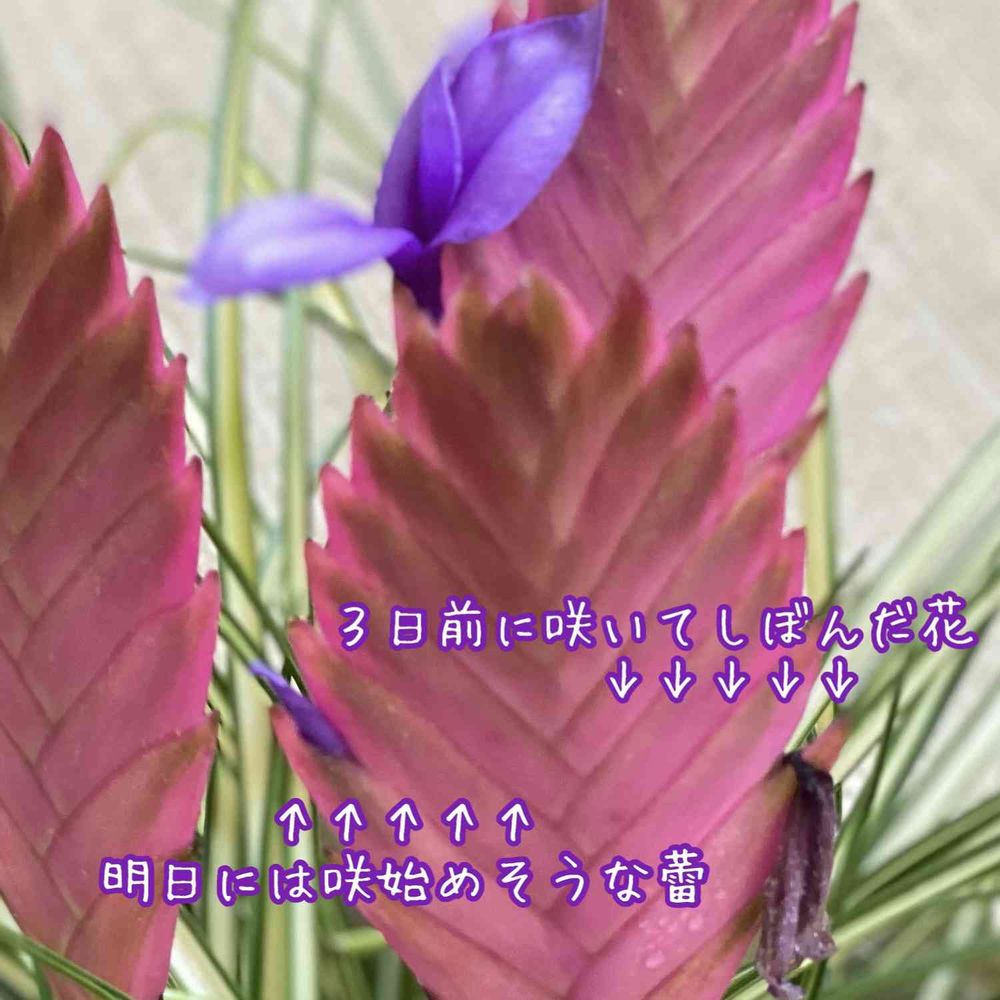 【続報】チランジア・ハナアナナス・キアネア調べると…「1つの株に1回花が咲くとそれ以上花が咲くことはありません。ただし、新しい株が出来ると、花が咲きます。」…と言われていますが、一つの株から、なぜか、もう一つ咲きそうです❣️😃