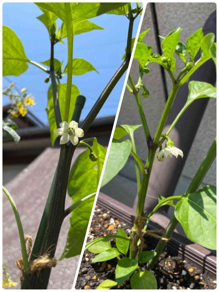 ヒョロヒョロだったピー太郎にも可愛いお花が咲きました🫑