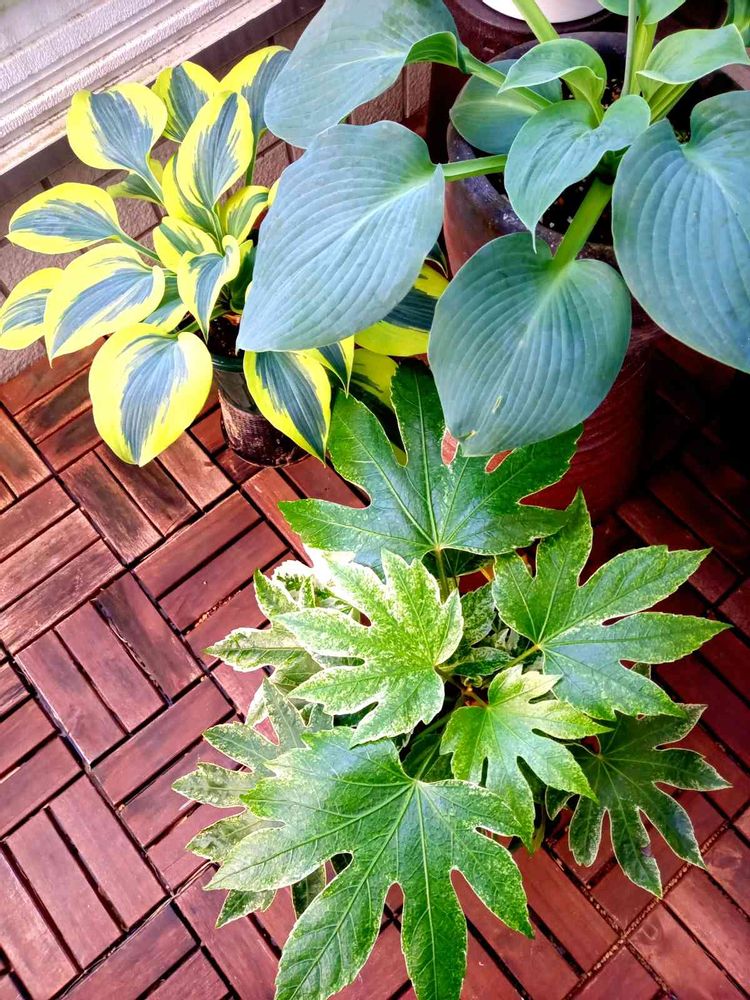 バルコニー/ベランダ,ヤツデ,ギボウシ(ホスタ)の投稿画像