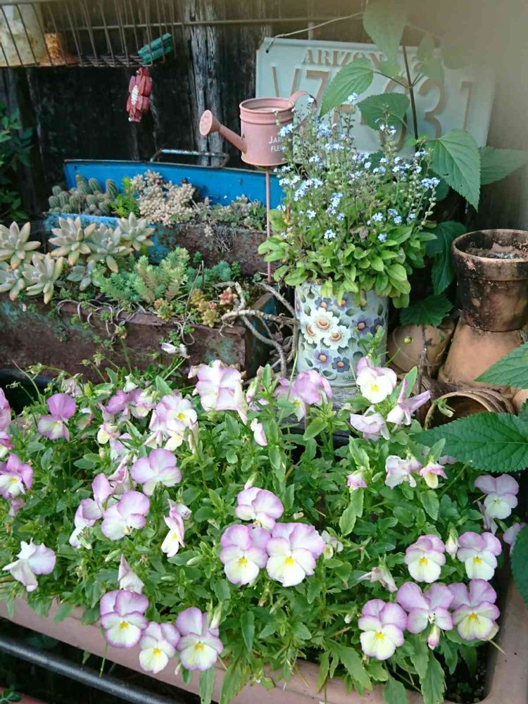 リメ缶の忘れな草も 多肉寄せも放置😛