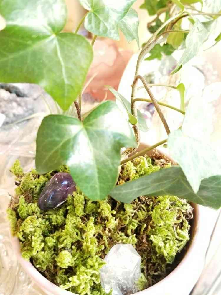 土の上に苔を敷くのが最近楽しいです。アメジストとクリスタルを置きました。