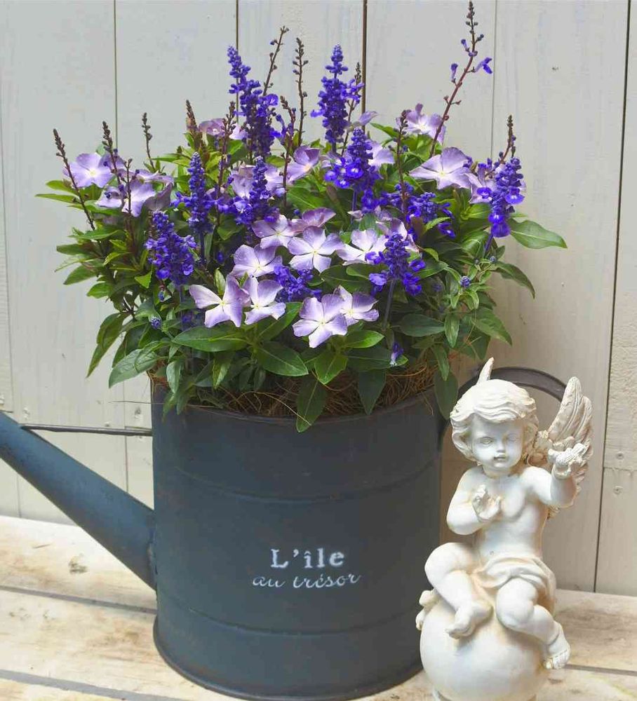 ブルーの寄せ植えは、この季節とても目を引きます✨。