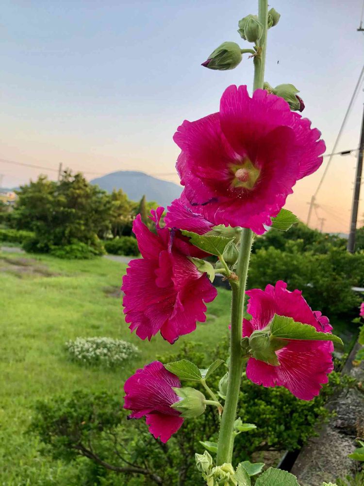 とても景色のいいところにタチアオイが立っているんですね💕💕💕