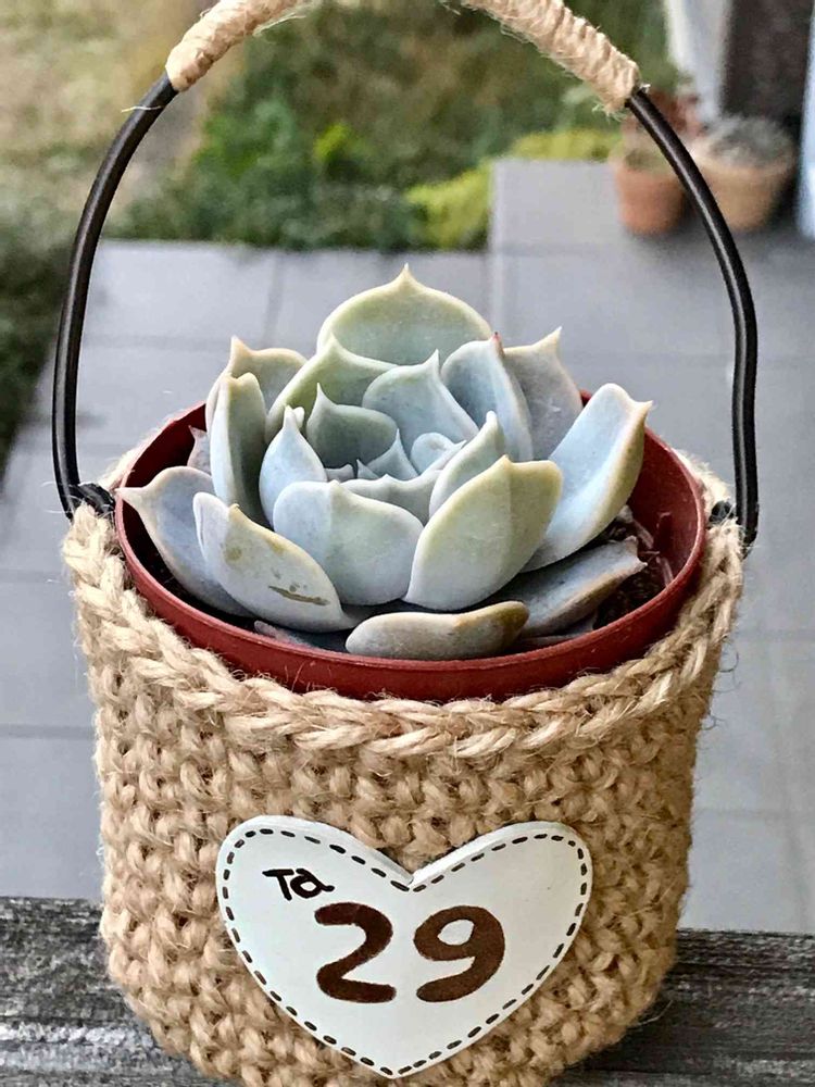 これも同じ編み方だよ!ただ麻ひもだから編みにくいの。手が痛くなるけど、多肉にはこっちのが合うよね😊