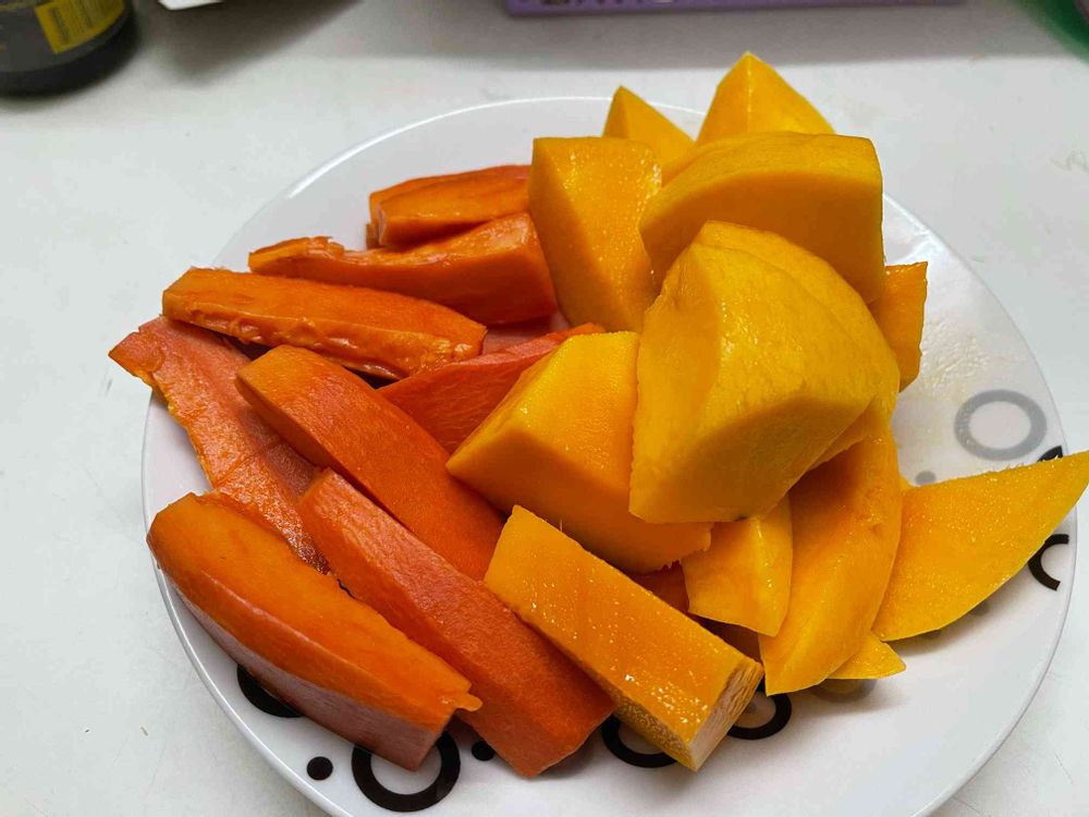 まるで人参🥕とかぼちゃ🎃の煮物みたいです。
