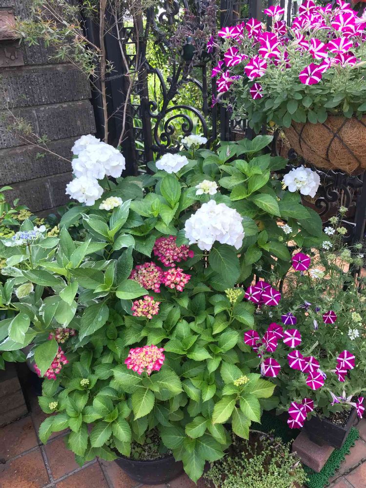 小さな庭,ペチュニア,紫陽花 あじさい アジサイの投稿画像