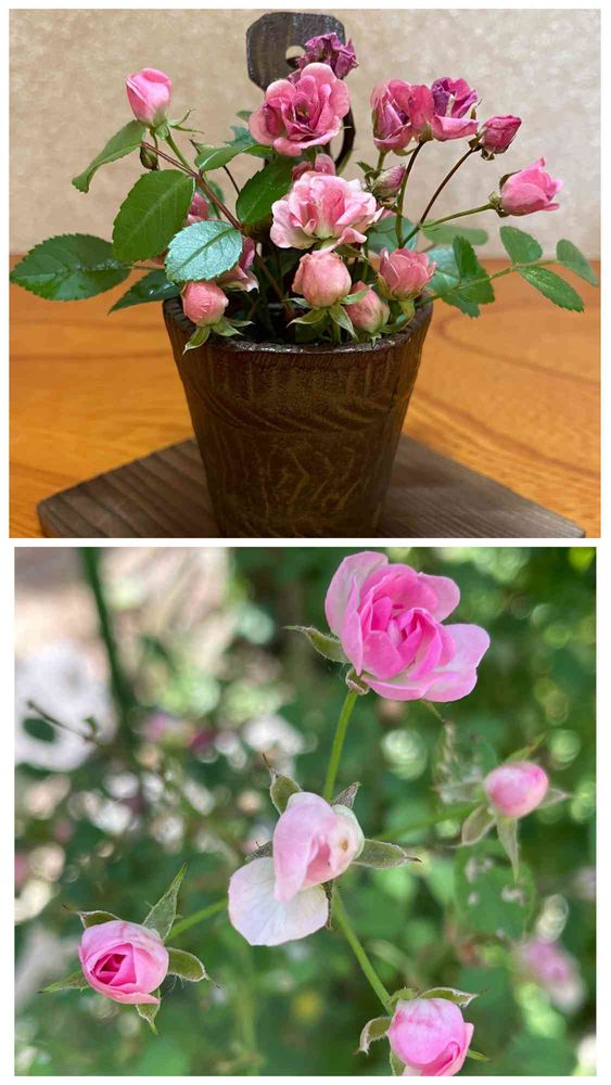 可愛いミニ薔薇、南部鉄の鉢に可愛くおさまってますね〜💕💕💕