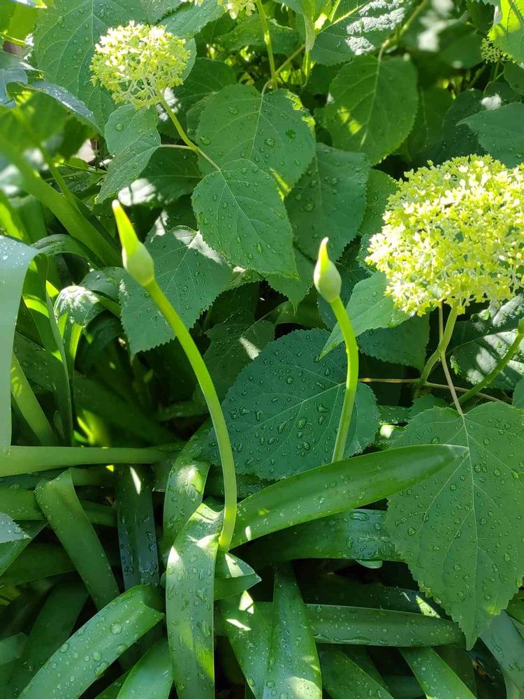 アナベルさんの下からアガパンサスの花芽が🌱ニョキニョキ😀
