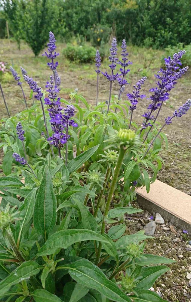 myミニ花壇の 越冬してくれた ブルーサルビア & エキナセアさんです😋💕…