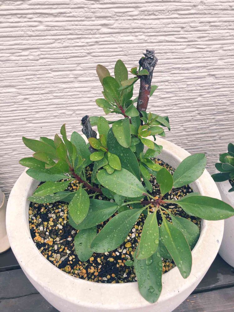 うっかり冬に水枯れさせてしまい、カラカラの葉を剪定し枝のみになっていましたが、元気に新芽を出して復活しました😭✨