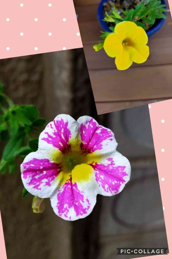 上の黄色🌼は、去年の7月からずっと咲き続けているカリブラコアさんで、驚異的生命力💪(^ω^💪)