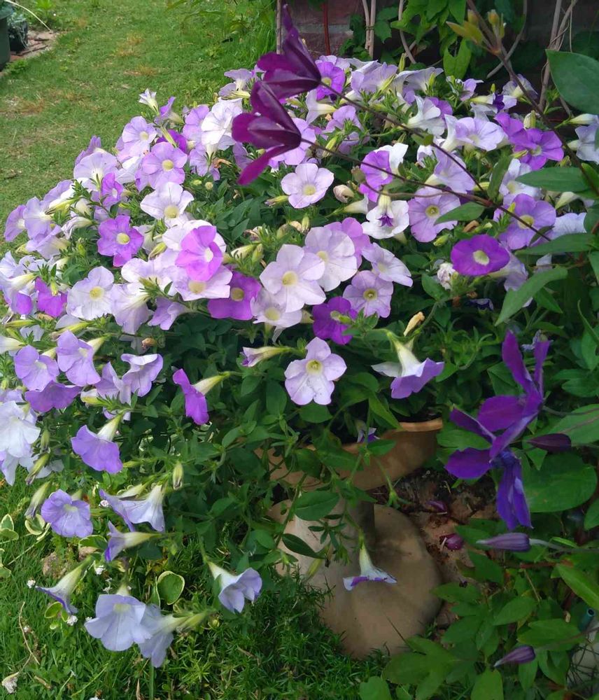 今日のスーパーチュニアスカイブループラスと手前はアフロディーテエレガフミナ。
