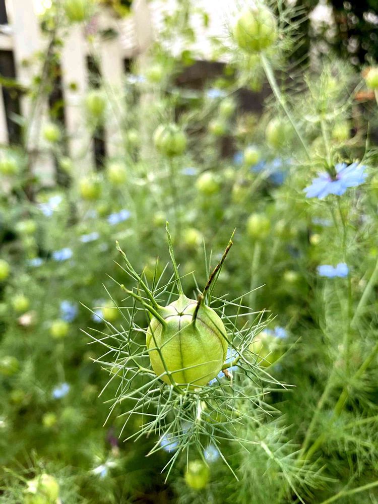 群生ニゲラの花も終わり、いよいよ「悪魔ちゃん」の出現です❣️😅