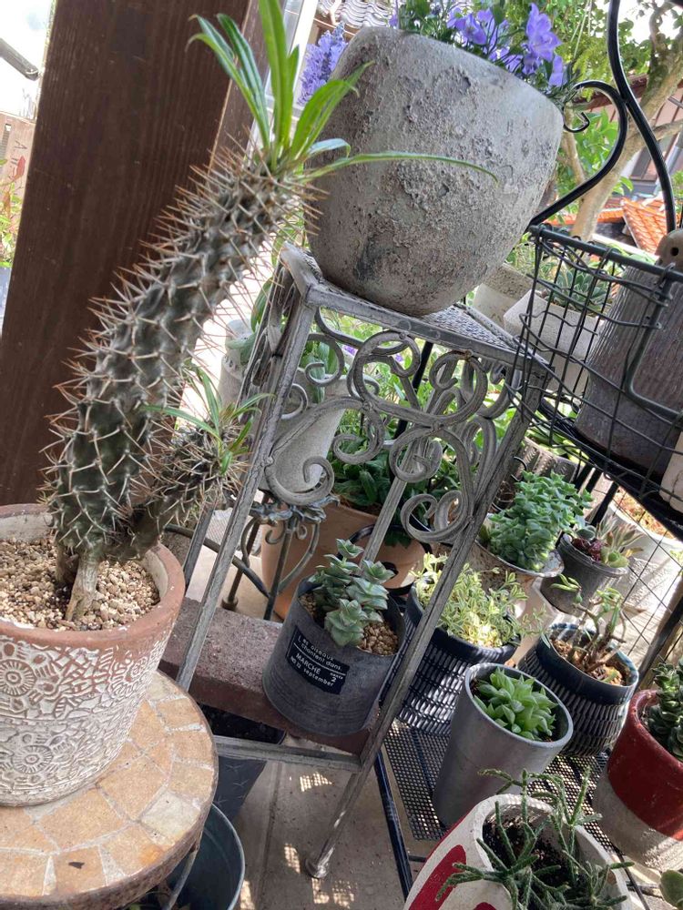 二階の屋根から鉢ごと落ちたパキポさん😆それからも踏んだり蹴ったりで、グラグラ状態が続いてました😰
