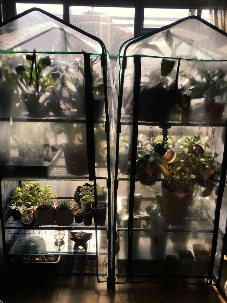 ちなみに、多肉ちゃんたちは下の段に居て昼間はビニールを上に上げてるからムンムンしなくて済むんです😘