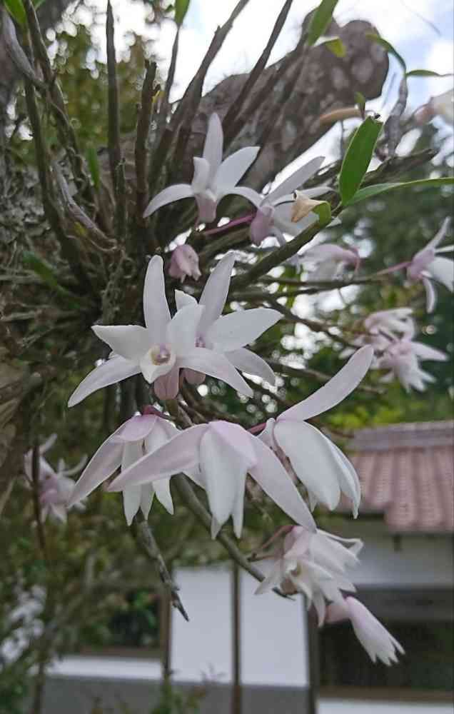 庭木につけたセッコクが、満開となりました。