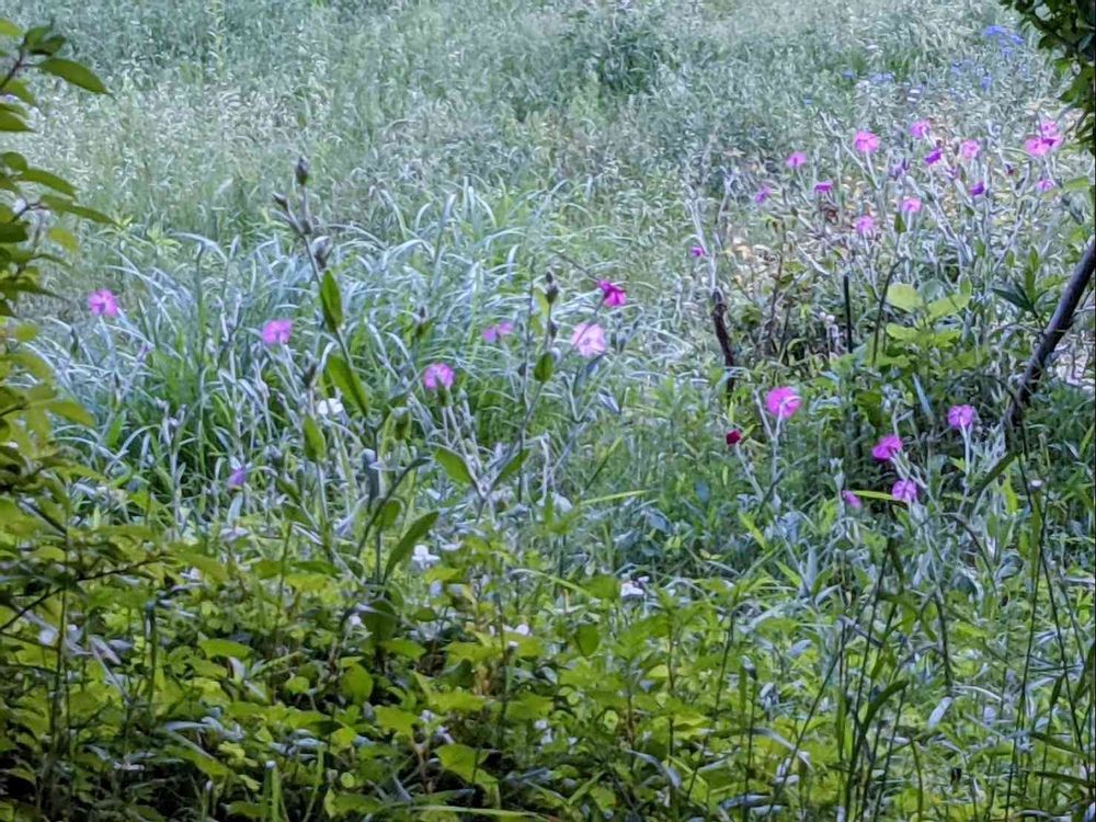 夕方上の庭から斜面を見下ろすと、突端のフランネル草が夕日を受けて、モネの絵のようにきれいでした。