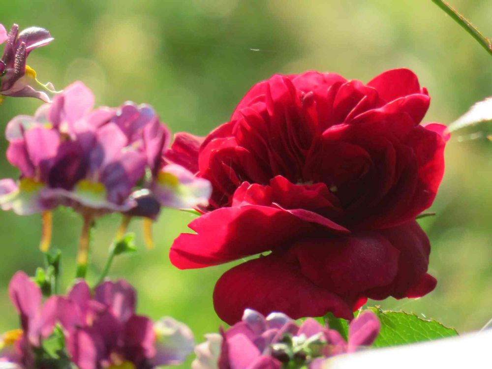 咲きはじめは深みのあるクリムゾンレッドで、咲き進むとロゼット咲き