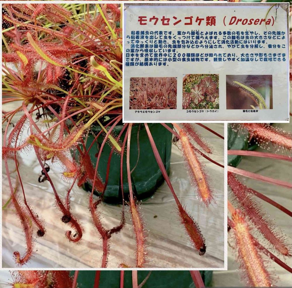 コケとついていますが、葉の表面に生える繊毛から消化酵素を含む粘液を出し、その粘着力で獲物を捕らえる食虫植物です。
