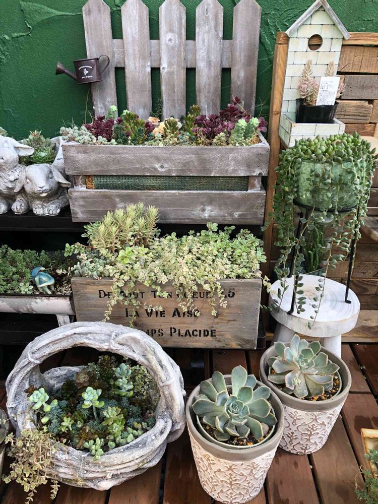 手前のカゴ寄せ植えはお気に入りの一鉢💕