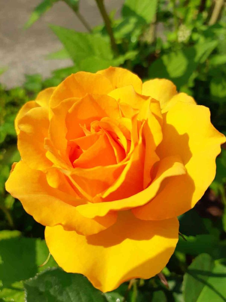 朝日を浴びて輝きを増したオレンジ色のミニバラです🌹🌿